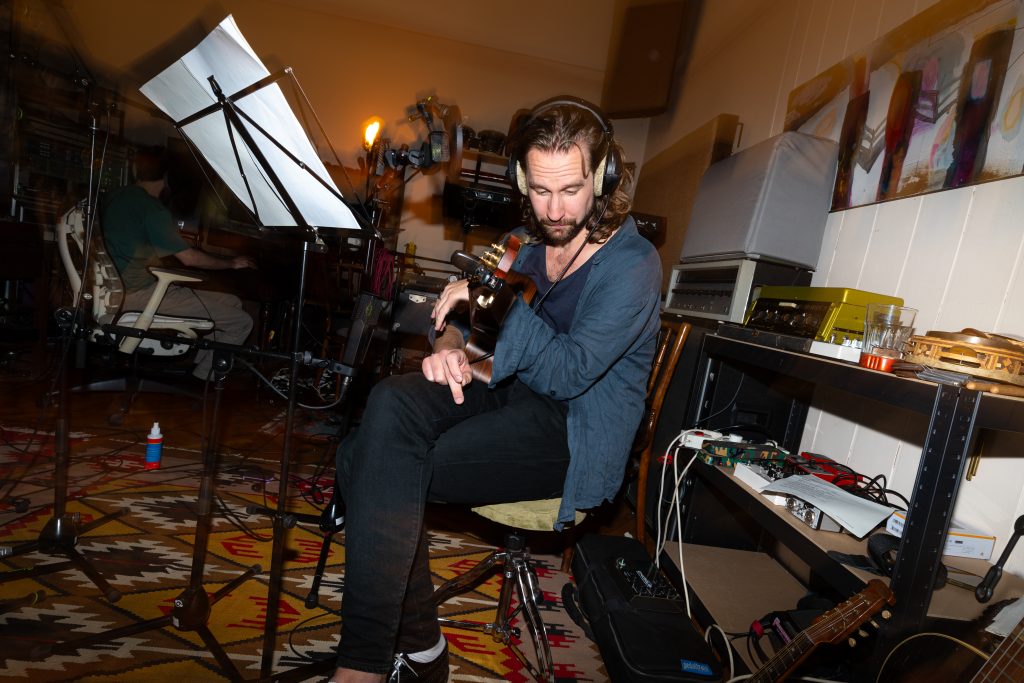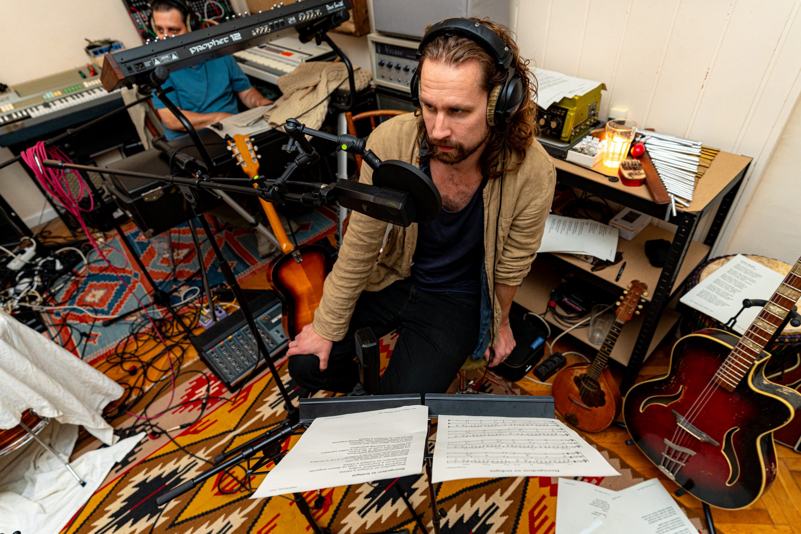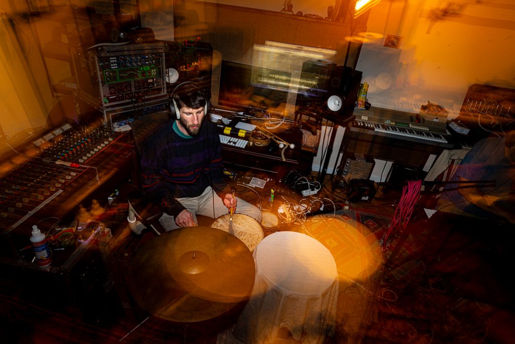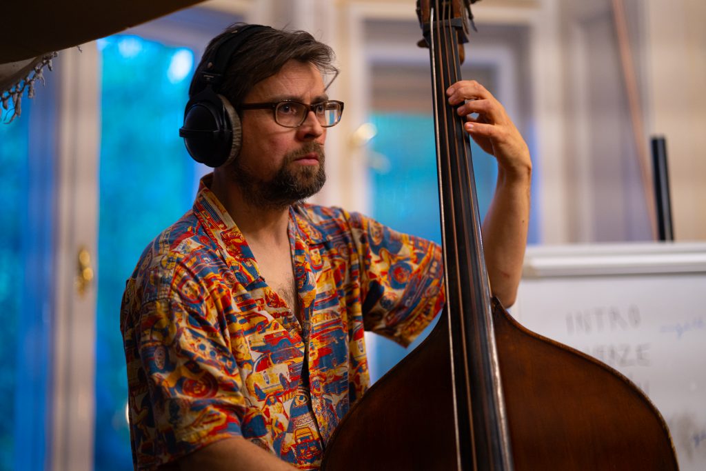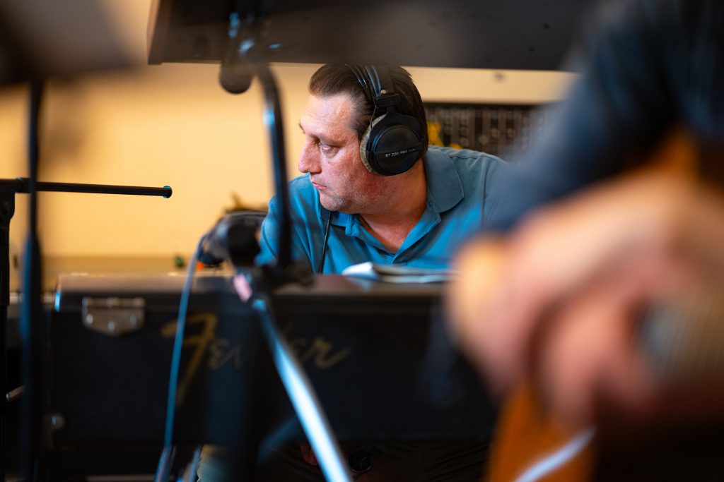 Weil András, gyártásvezető hangmérnök ritmushangszerek rögzítése közben